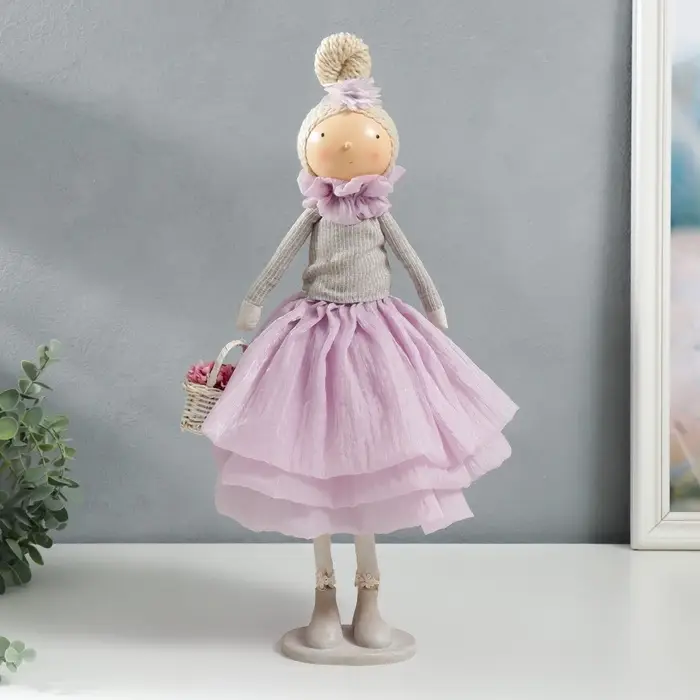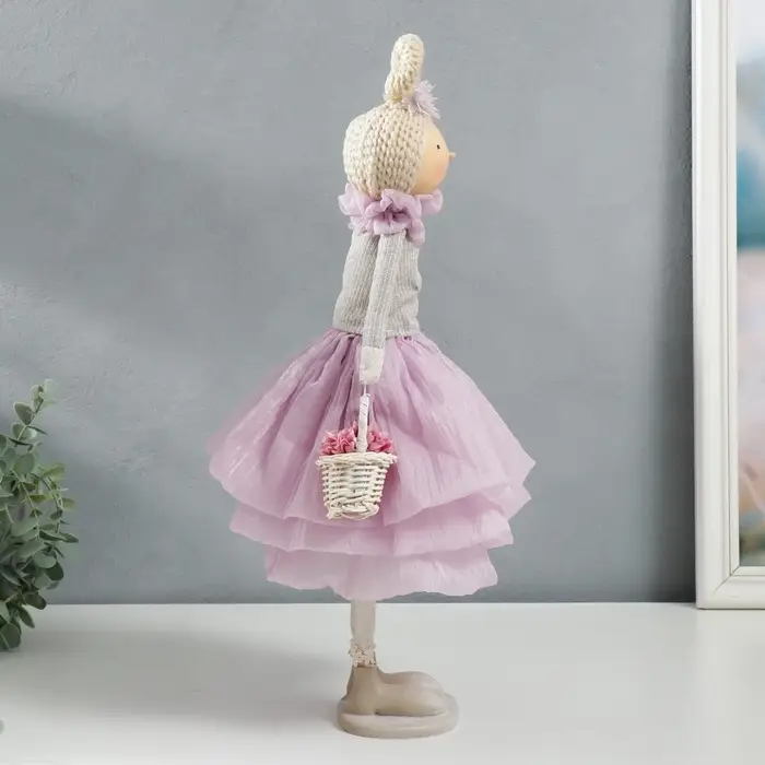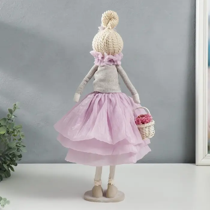 Интерьерная кукла текстильная «Малышка в сиреневом наряде, с корзиной цветов», 45.5×17×19 см
