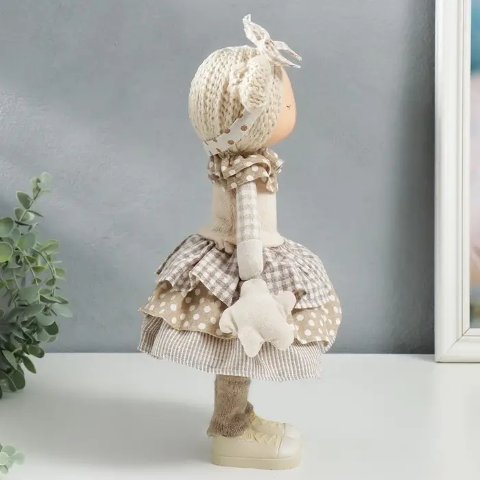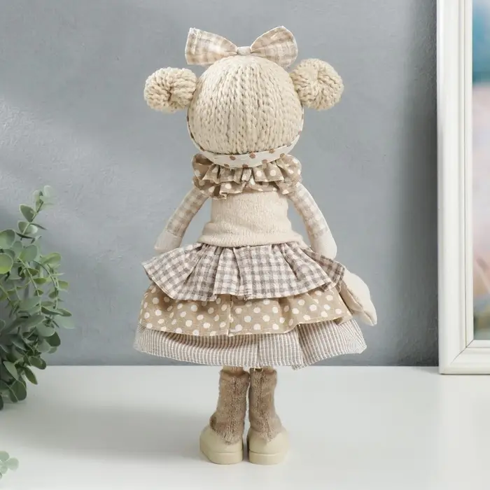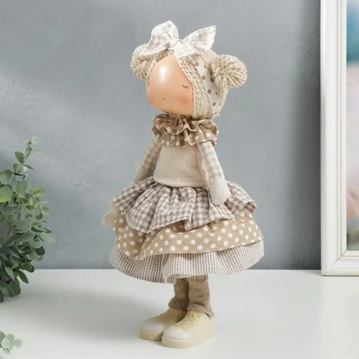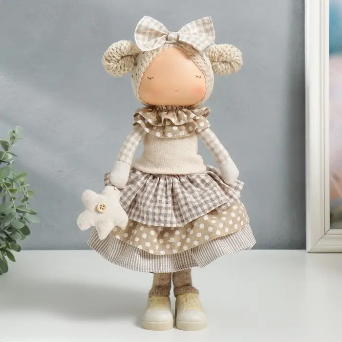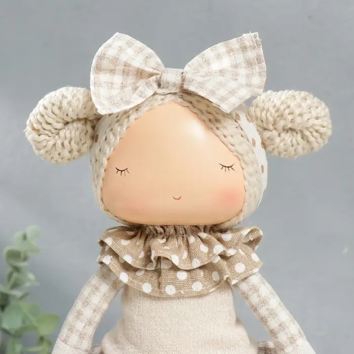 Очаровательная текстильная кукла с бантом в волосах и цветочком станет великолепным украшением для детской комнаты. С высотой 35,5 см она идеально подходит для игр и объятий, а также вдохновляет на создание увлекательных историй. Эта кукла не просто игрушка, а верная подруга для вашего ребенка.