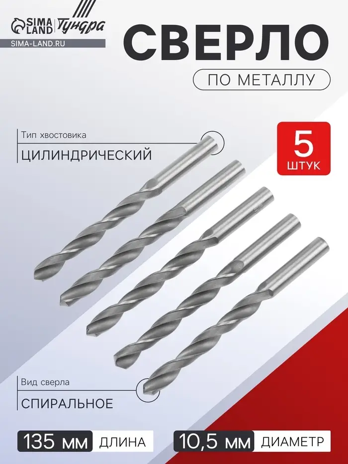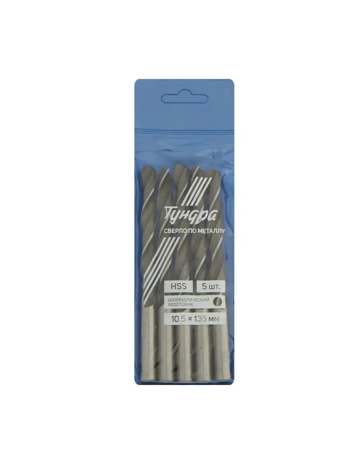 Сверло по металлу ТУНДРА, HSS, цилиндрический хвостовик, 10.5 мм, 5 шт.