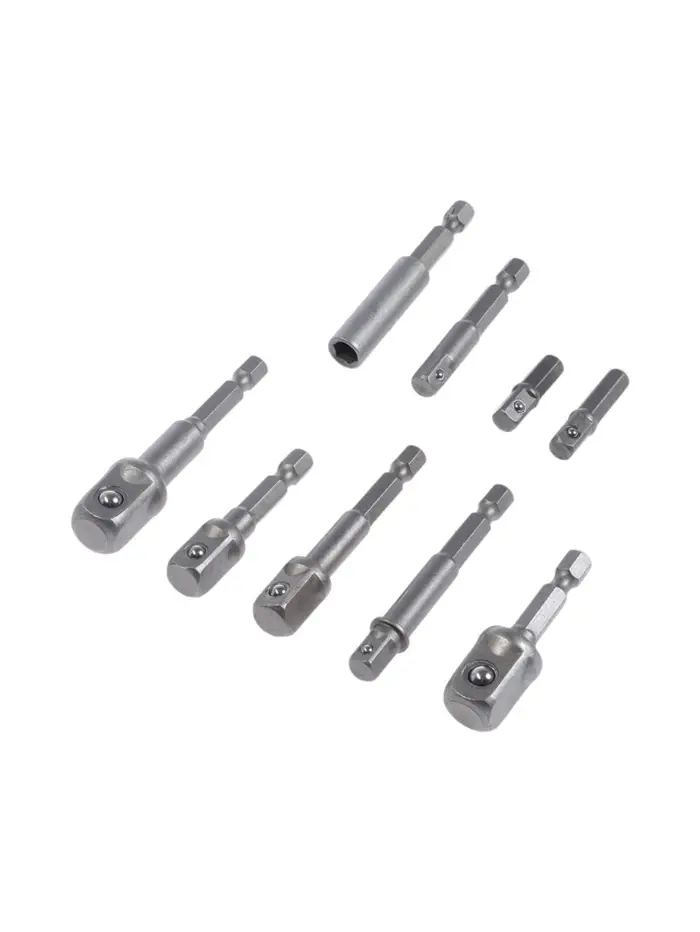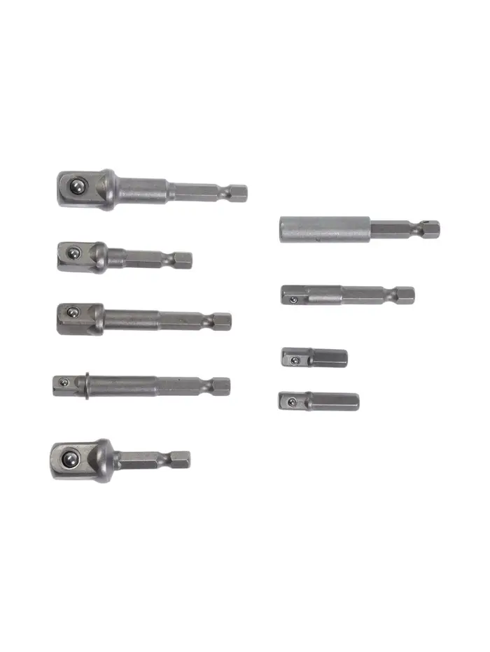 - Шесть длин для сложных задач: Короткие адаптеры подходят для работы в стеснённых условиях. Длинные переходники помогают добраться до глубоких гаек или болтов — без необходимости менять инструмент.
