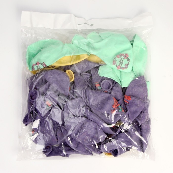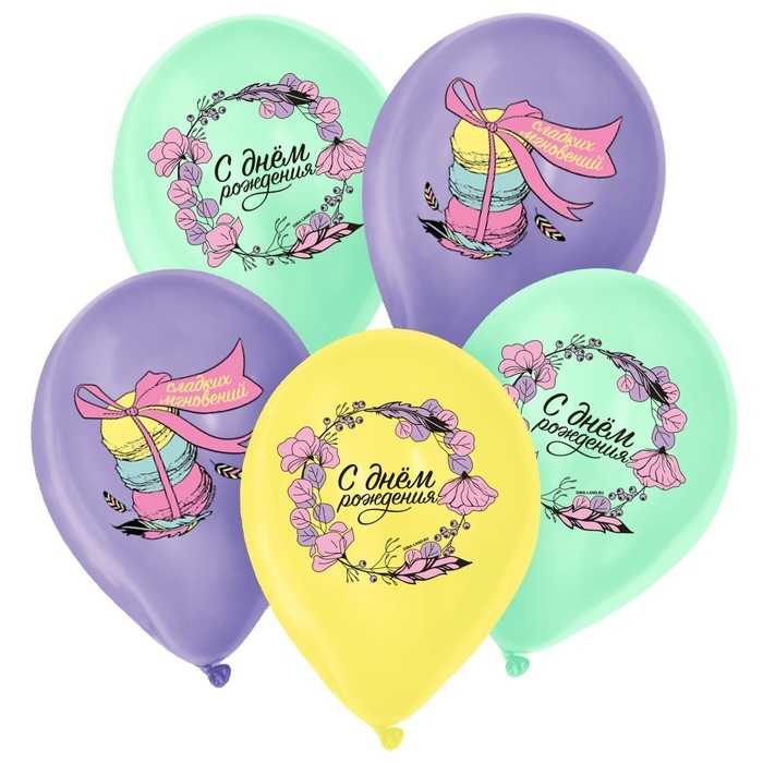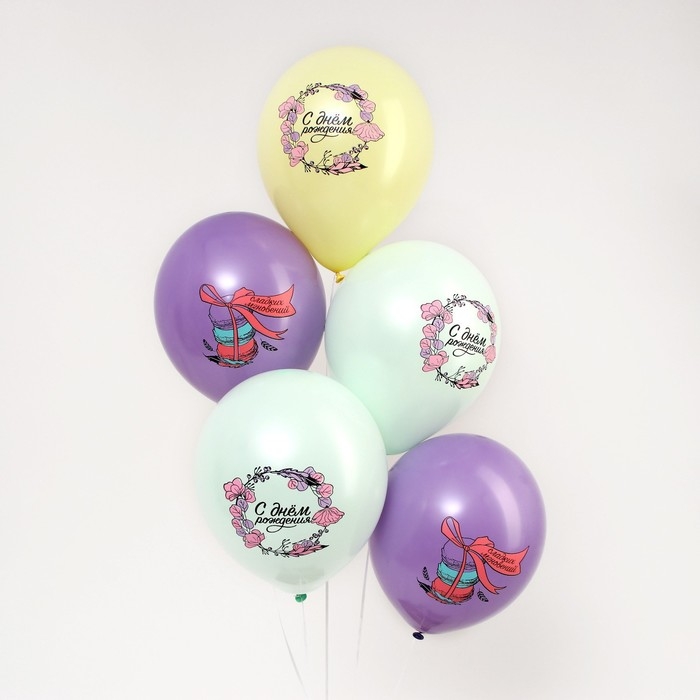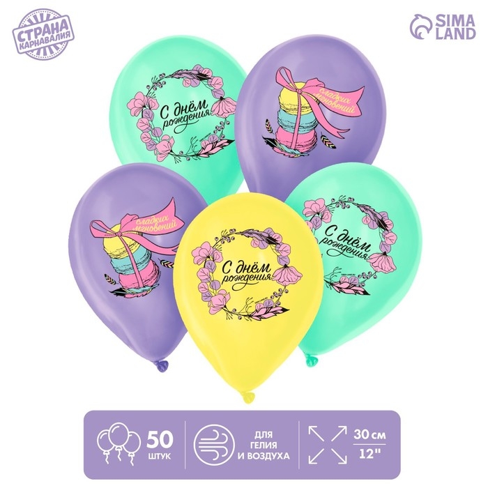Воздушный шар латексный 12" «С днём рождения», нежность, 50 шт.