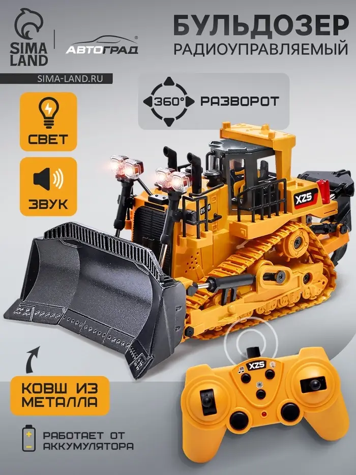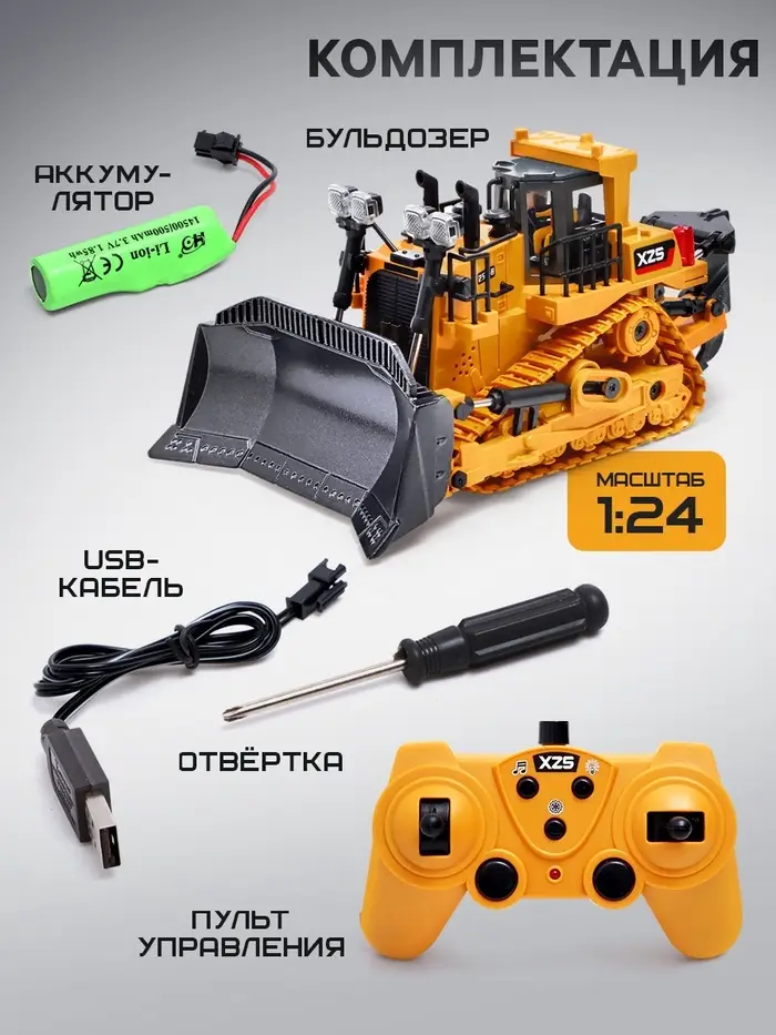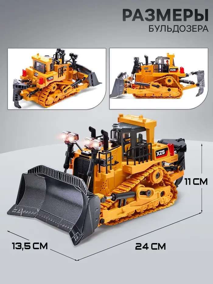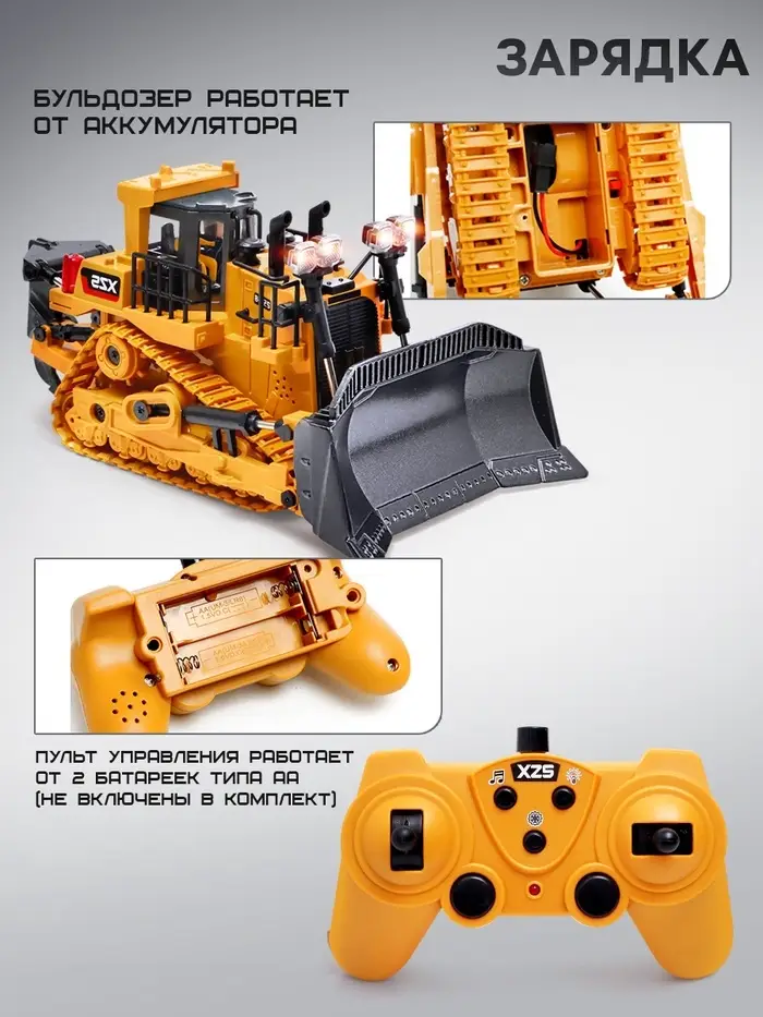 Бульдозер радиоуправляемый XZS, 1:24, с элементами из металла, работает от аккумулятора