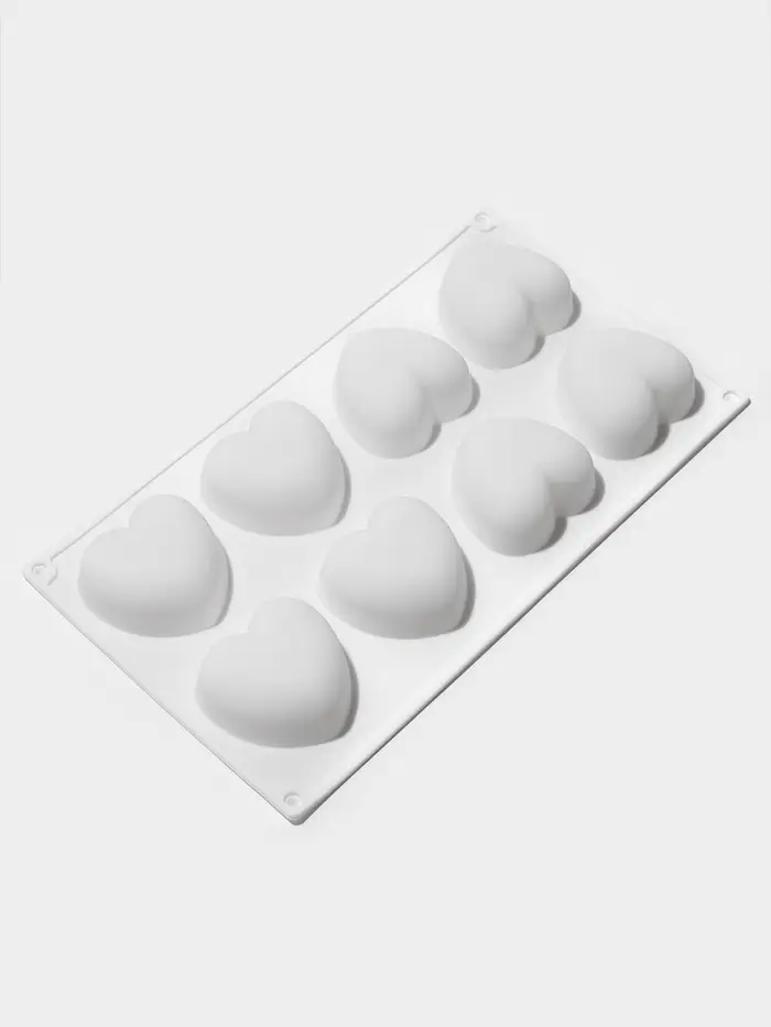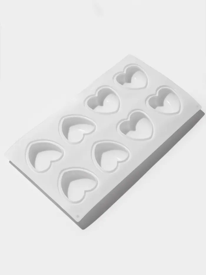 Форма для муссовых десертов и выпечки KONFINETTA «Сердца», 30×17.5×3 см, 8 ячеек (6.2×6 см), силикон, белая