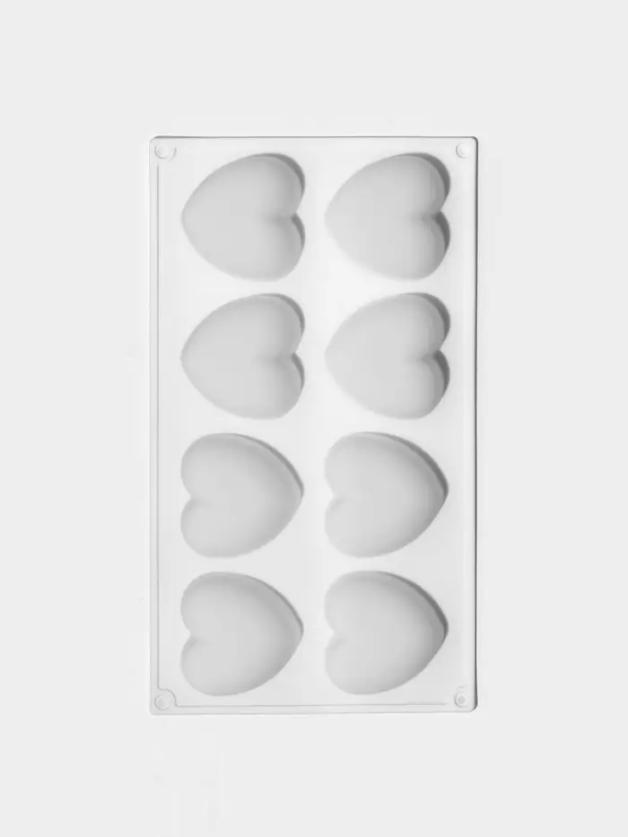 - 8 крупных ячеек в форме сердца — достаточно для сервировки гостей или тематического подарочного набора.
