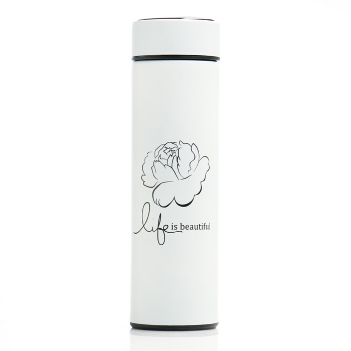 Термос, 500 мл, Basic "Жизнь прекрасна",с ситечком,с датчиком температуры,сохраняет тепло 8 ч