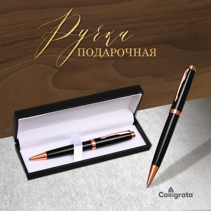 Ручка подарочная перьевая Calligrata, в кожзам футляре ПБ IM, корпус черный с золотом