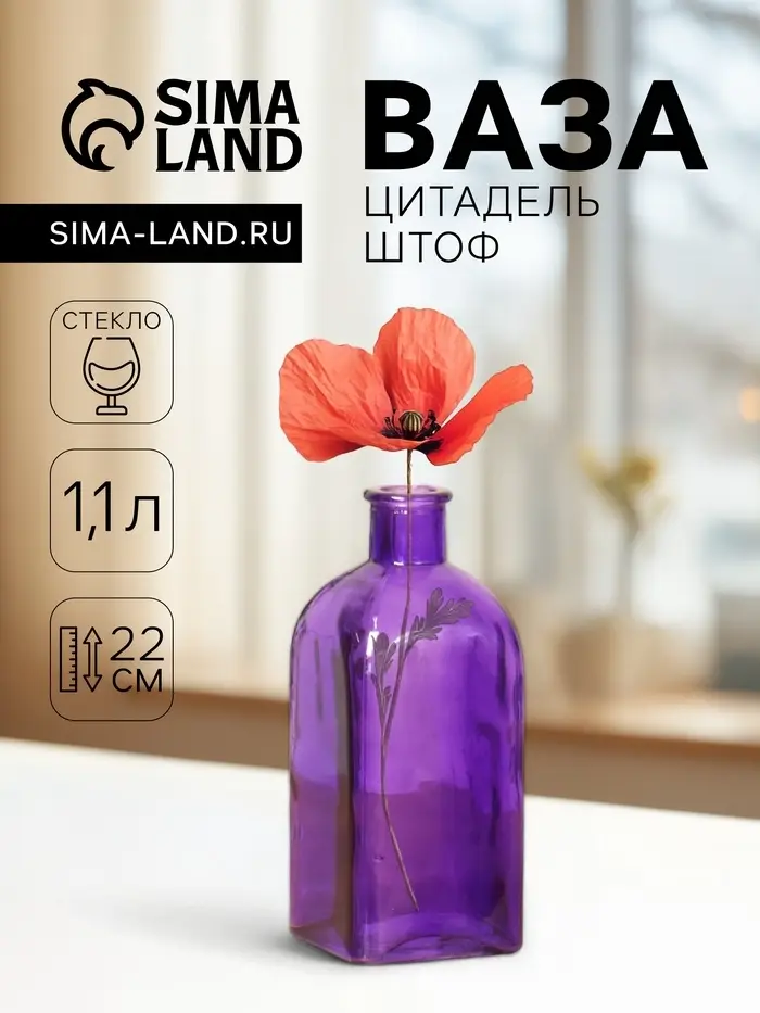 Добавьте изысканности в ваш интерьер! Фиолетовая ваза с элегантным дизайном станет стильным украшением вашего дома. Высота 22 см и объем в 1,1 литра делают ее идеальной для создания разнообразных цветочных композиций, добавляя яркий акцент в ваше пространство, особенно в праздник 8 Марта.