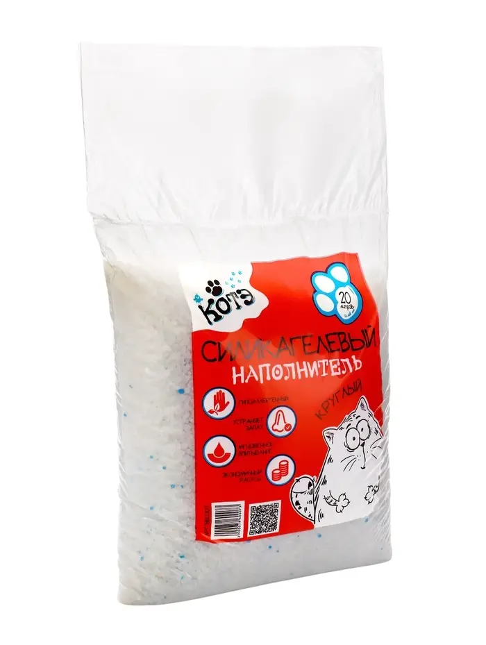 Наполнитель силикагелевый для кошачьего туалета представляет собой твёрдый сорбент гидрофильного типа - силикагель. Благодаря гранулам с пористой структурой, наполнитель имеет отличные впитывающие и удерживающие запах свойства.