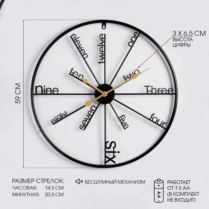 Часы настенные интерьерные «Большие цифры», бесшумные, плавный ход, d=31 см, от батарейки 1×АА