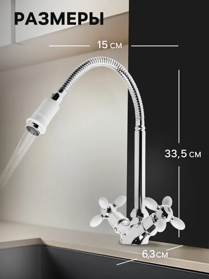 Применение: Для кухни, где важна двухцветная отделка и подвижность излива.