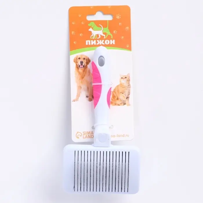 Изделие удобно лежит в руке и не причиняет дискомфорта животному при вычесывании.