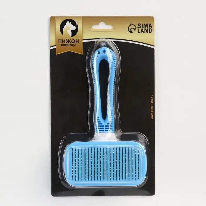Пуходёрка Пижон Premium, 10×19 см, с каплями, с самоочисткой, облегчённая, пластик, голубая