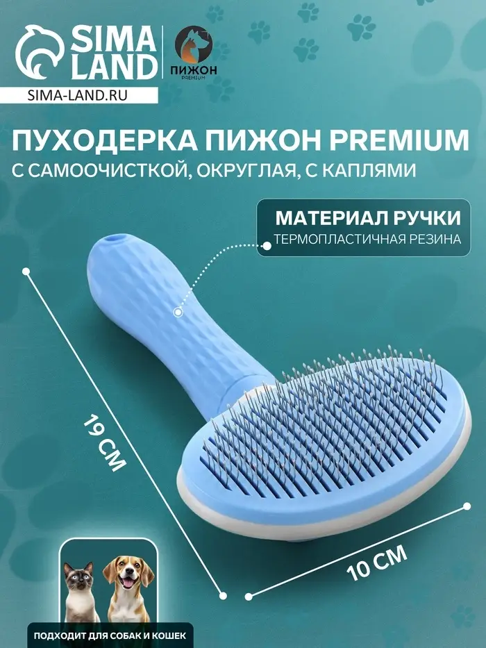 Пуходёрка Пижон Premium, 10×19 см, округлая, с самоочисткой, с каплями, пластик, голубая