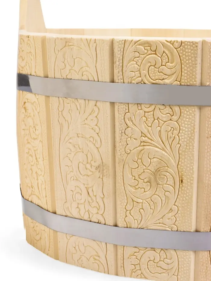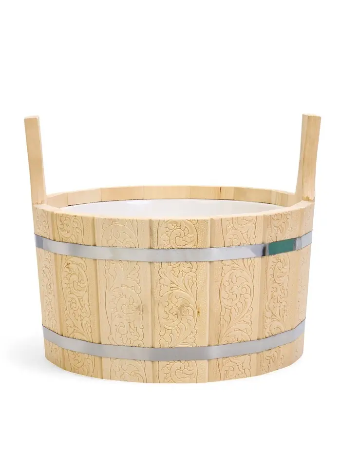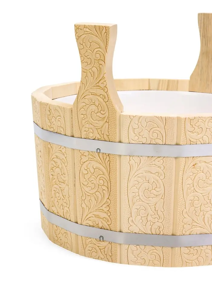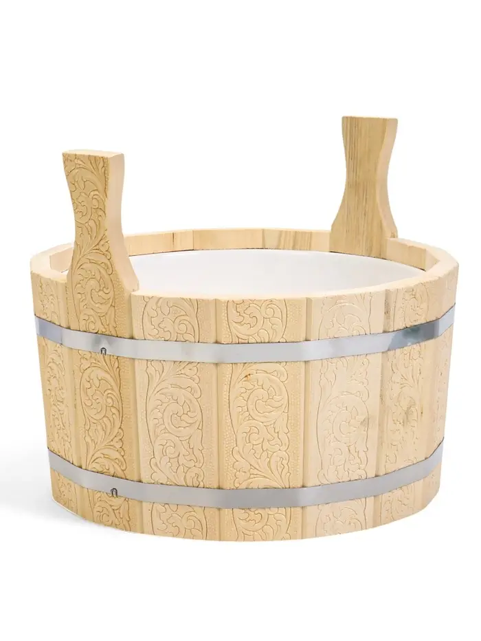Шайка для бани и сауны «Русский узор», 8 л, деревянная, пластиковая вставка, «Добропаровъ»