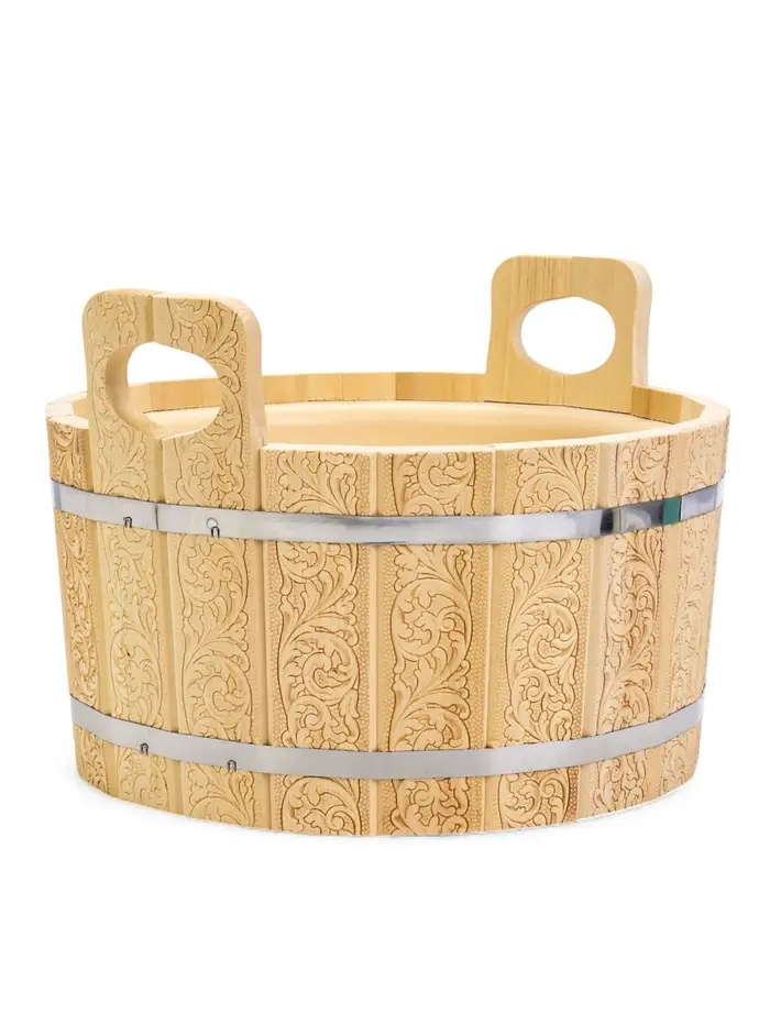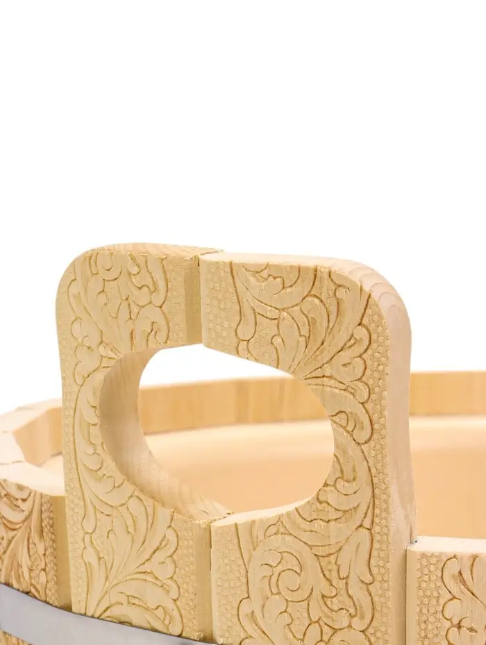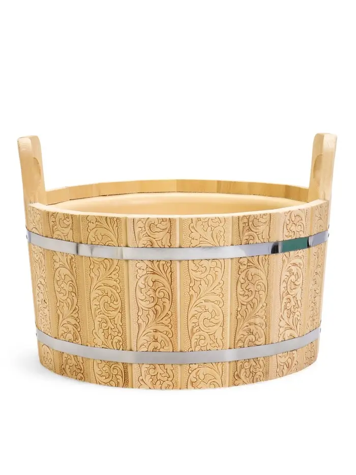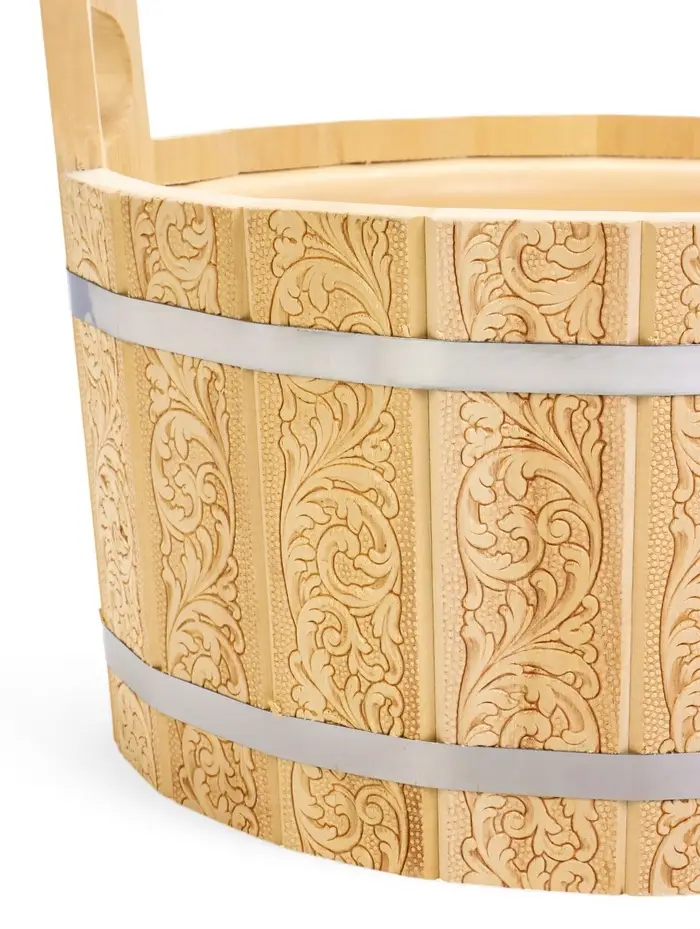 Шайка - таз для бани и сауны «Русский узор», 12 л, деревянная, пластиковая вставка, «Добропаровъ»