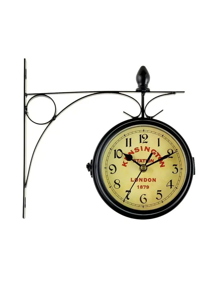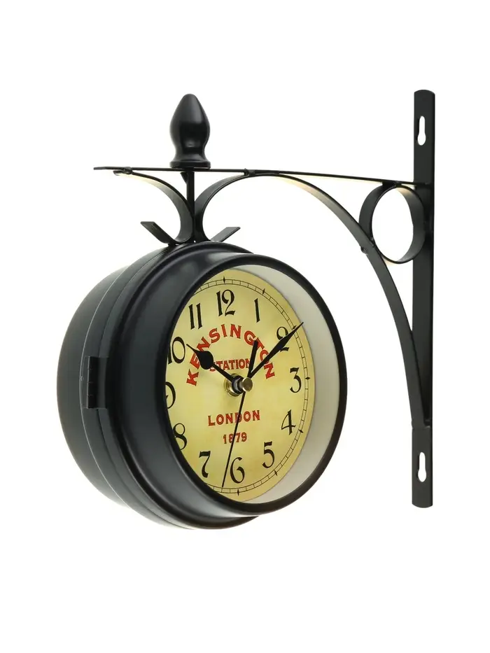 Часы настенные интерьерные Kensington station, двусторонние, на подвесе, бесшумные, плавный ход, d=12 см, от батареек 2×АА