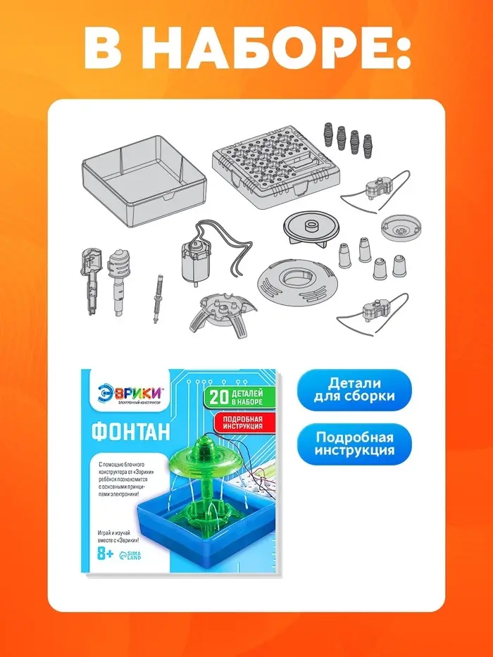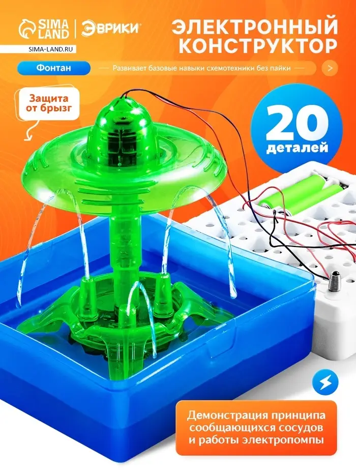 Набор покажет чаду, как работает настоящий фонтан, разовьёт логику и мышление. Проделывая опыты, ребёнок получит навык практической деятельности и поймёт, что учиться — это весело!