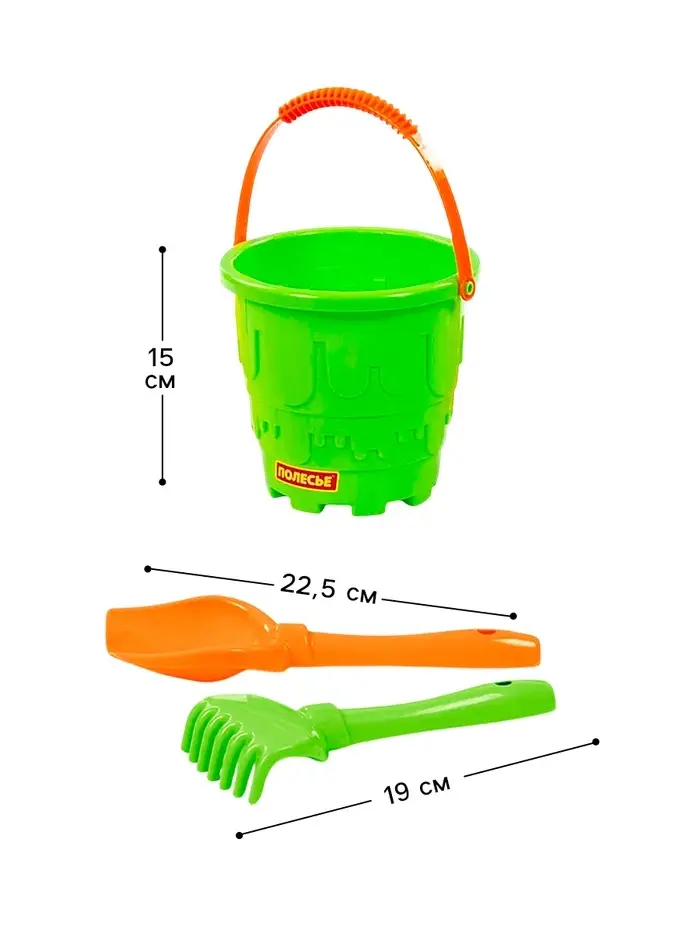 - В набор входят все необходимые инструменты для игр в песочнице. Ребёнок сможет копать, строить и украшать свои песочные шедевры.