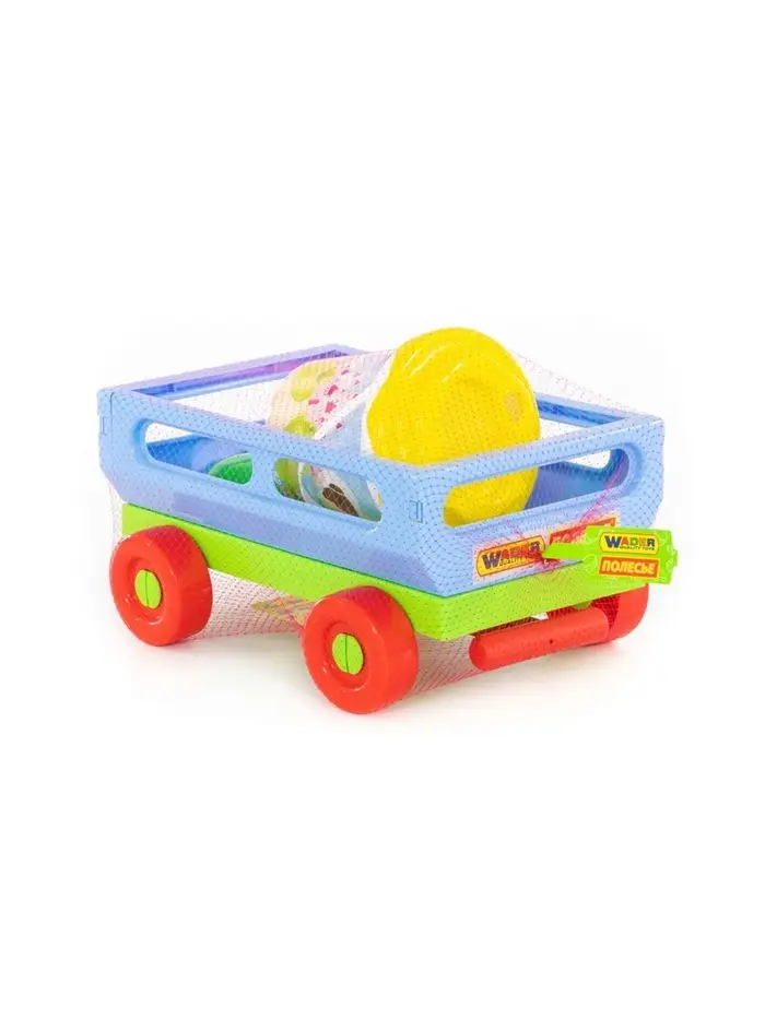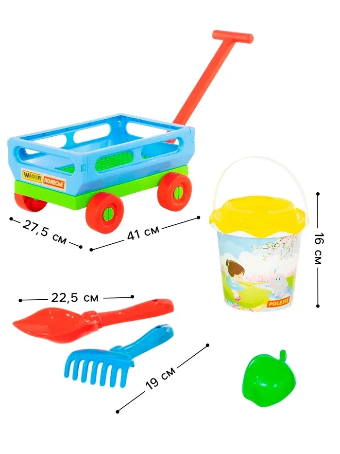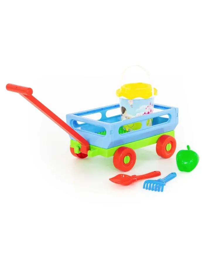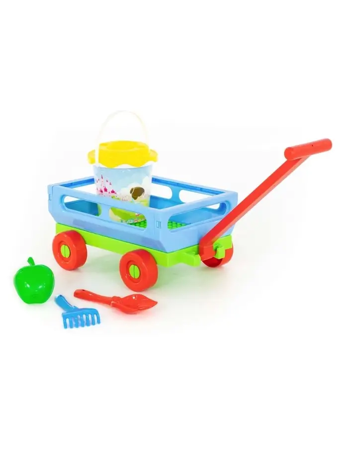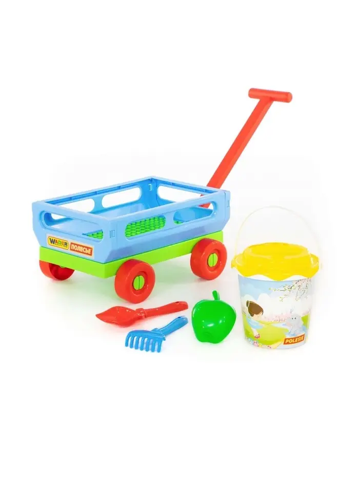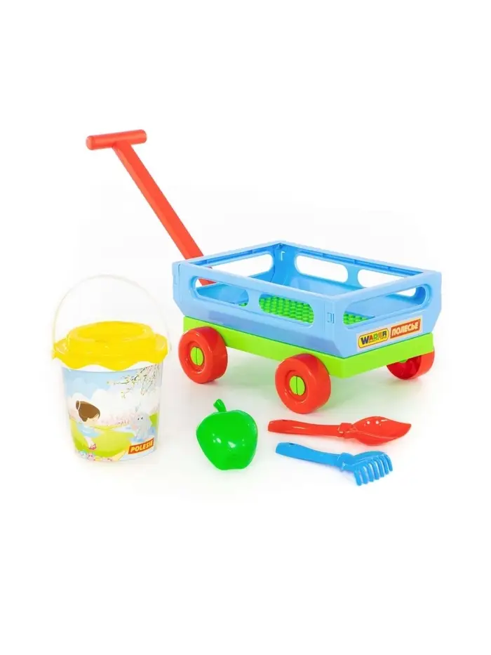 Набор игрушек для песочницы, 6 предметов: тележка, ведро, ситечко, лопатка, грабельки, формочка