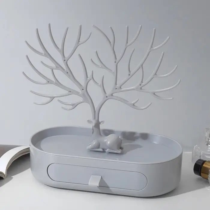 Универсальная подставка в форме оленя — стильное и практичное решение для хранения украшений, которое гармонично впишется в любой интерьер. Её асимметричная овальная форма и спокойный серый цвет создают атмосферу уюта и современного дизайна, а компактные размеры (26×25×12,5 см) позволяют разместить аксессуар на комоде, туалетном столике или полке без лишних усилий.