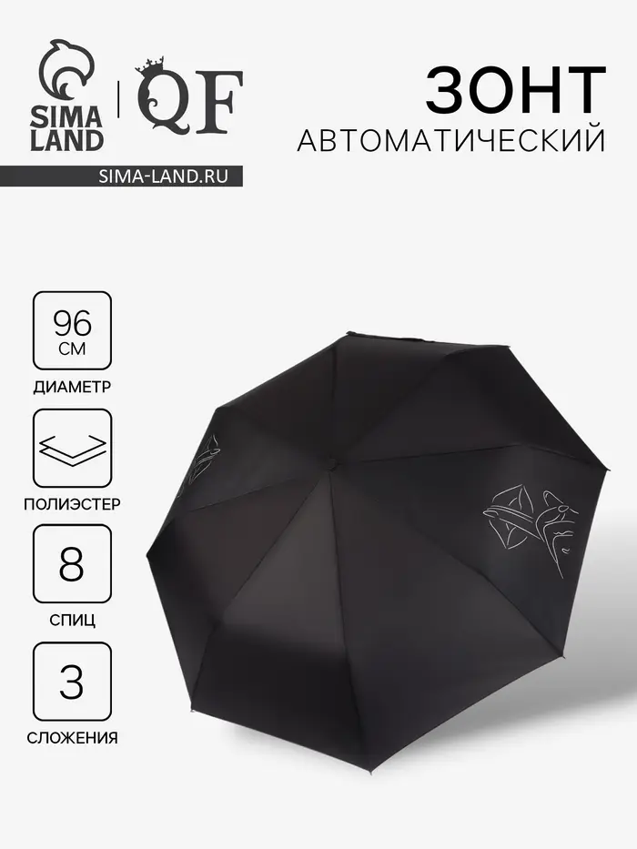 Зонт автоматический «Шёпот», 3 сложения, 8 спиц, R=48/55 см, d=96 см, чёрный