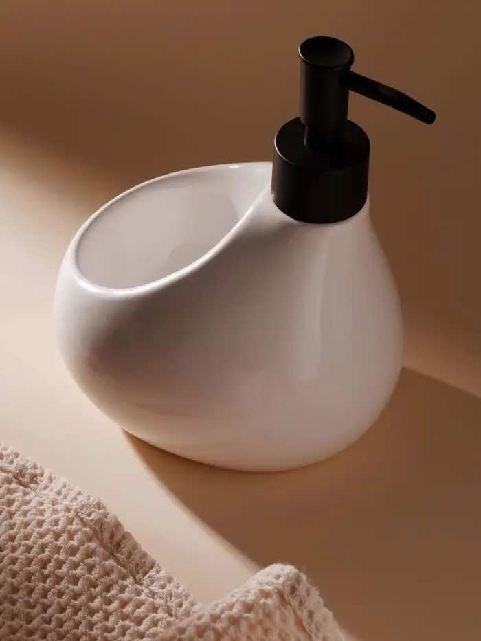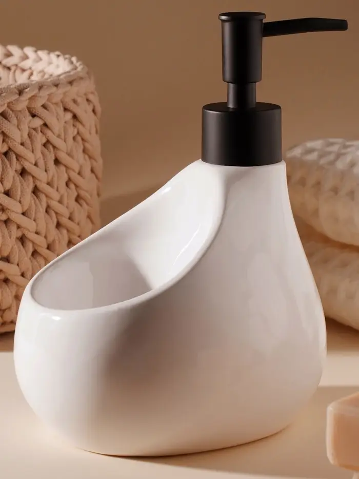 Белый цвет и лаконичный дизайн придают этому дозатору универсальность, позволяющую ему гармонично вписываться в любой интерьер. Изготовленный из прочной керамики, он гарантирует долговечность и надежность, а его объём в 450 мл идеально подходит для длительного использования без частых заправок.