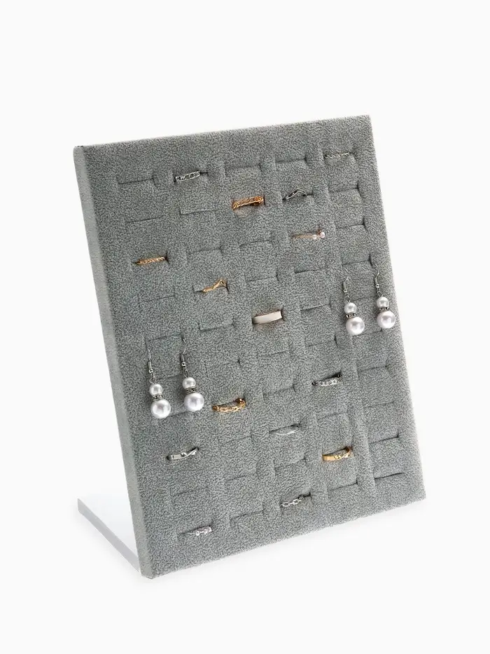 Подставка под кольца QF, 50 мест, флок, 20×10×25 см, серая