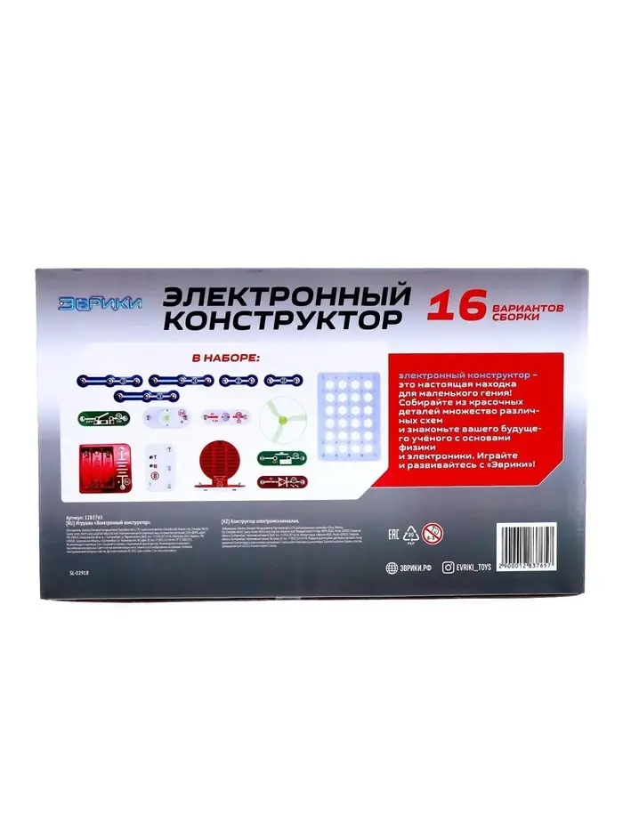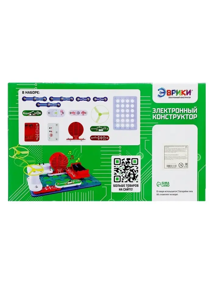 Конструктор электронный «Эврики», 58 схем, 18 элементов, работает от батареек