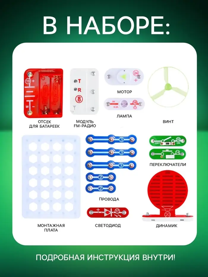 Экспериментируйте и создавайте электрические устройства самостоятельно. С конструктором «Чудеса электроники» нет ничего невозможного!