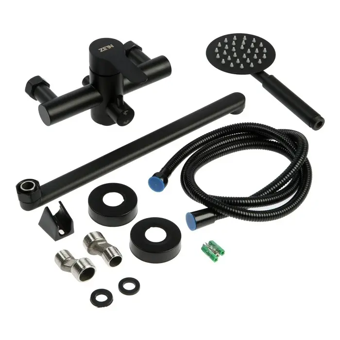 Смеситель для ванны ZEIN Z3852, однорычажный, душевой набор, лейка 5 режимов, черный