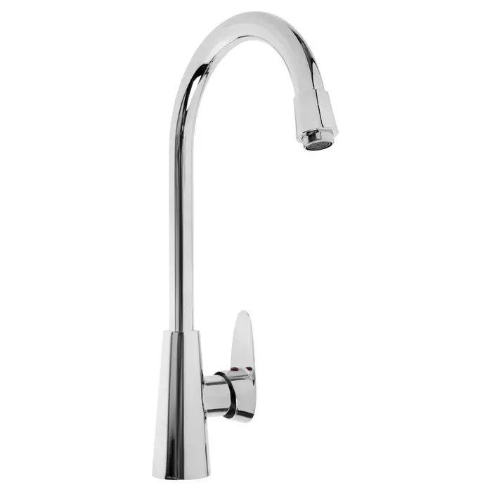 Высокий кухонный смеситель хром — рычажная модель с увеличенным корпусом. Изготовлен из цинкового сплава, устанавливается на раковину или столешницу.