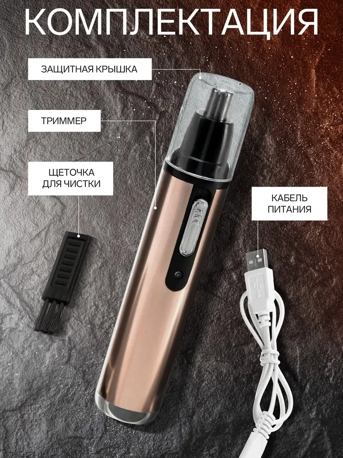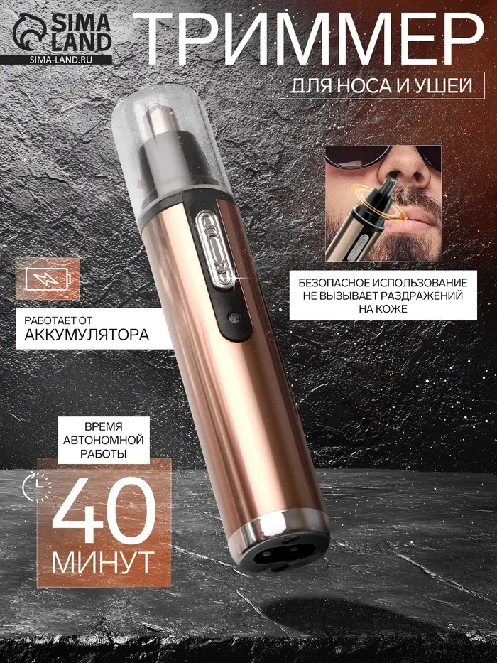 Триммер для волос Luazon LTRI-02, для носа/ушей, АКБ, золотистый