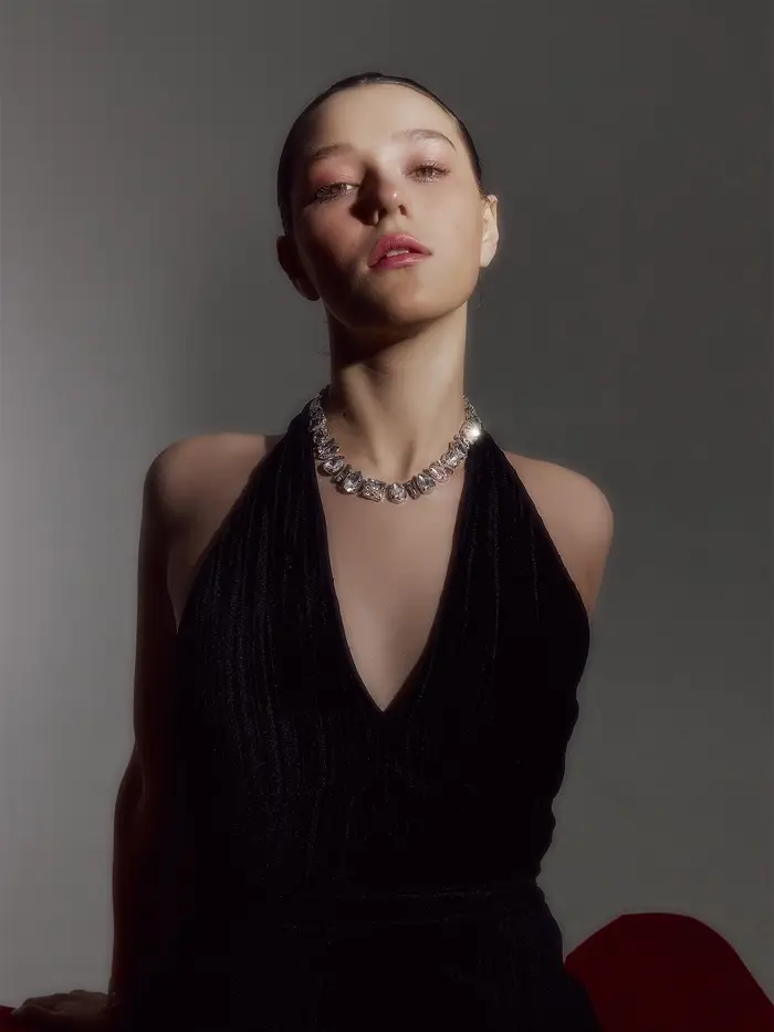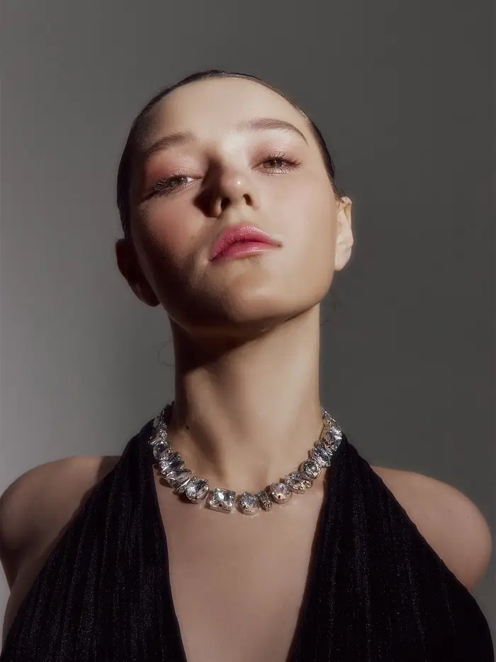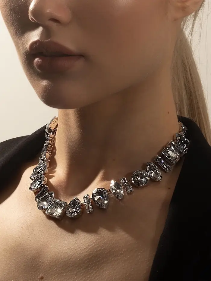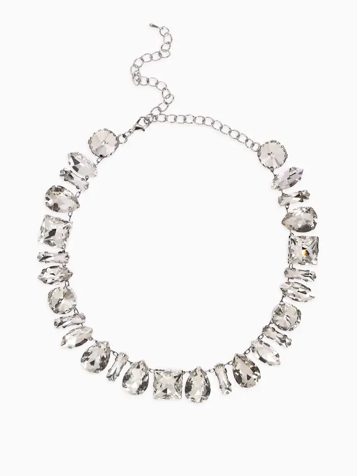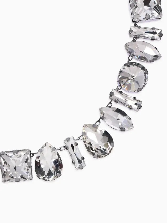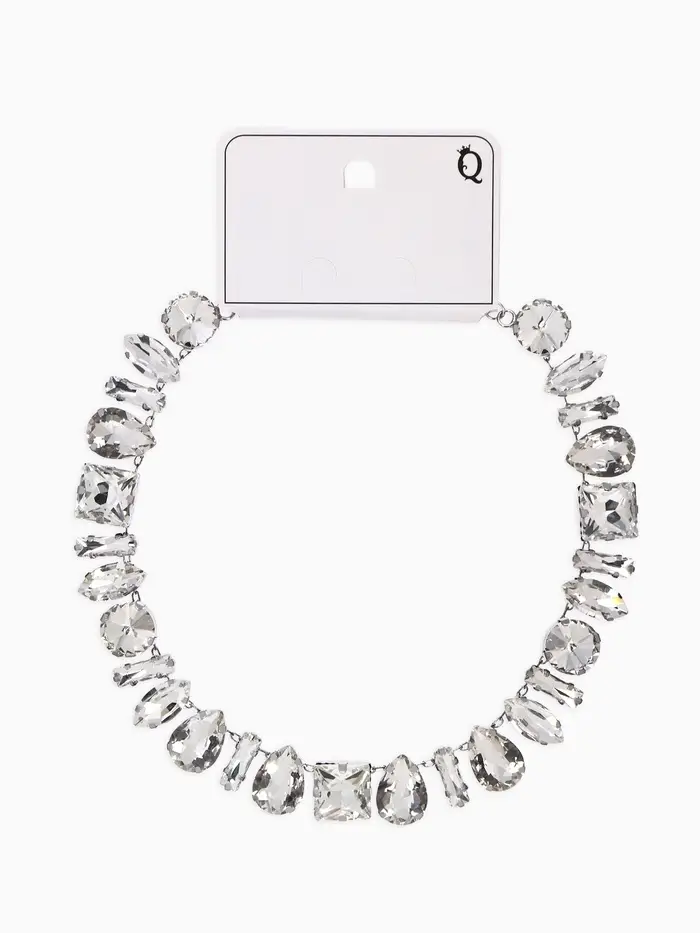Колье «Драгоценность», геометрия, белое в серебре, 32 см