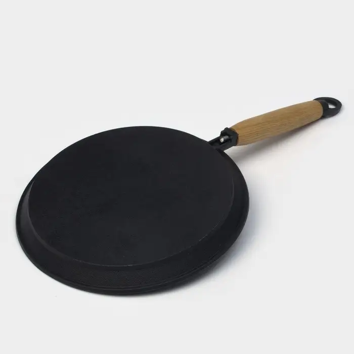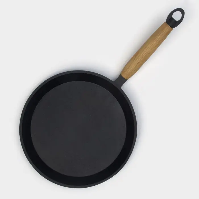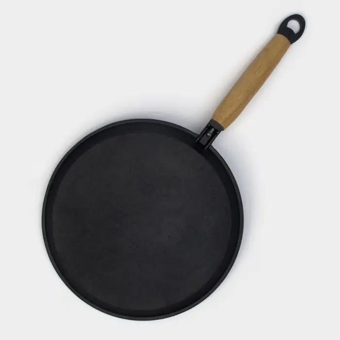 Сковорода блинная литая Magma, d=22 см, h=1.5 см, деревянная ручка, индукция, чугун, чёрная