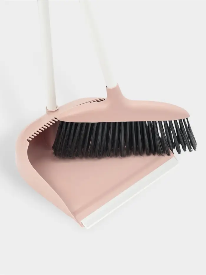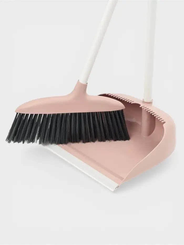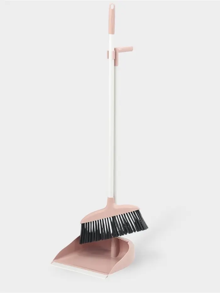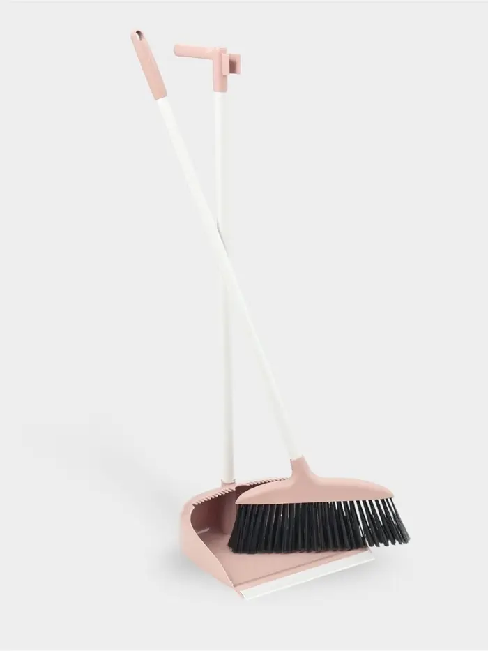 Щётка для пола: совок 24×25×81 см, щётка 24 см, персиковая