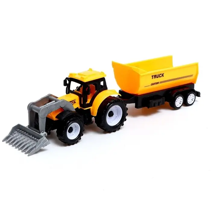 - Два трактора в наборе: яркие и прочные модели из пластика готовы к работе на любой «стройке». Каждый трактор уникален, что позволяет ребёнку придумывать разные роли для них: один может перевозить грузы, а другой расчищать дорогу.