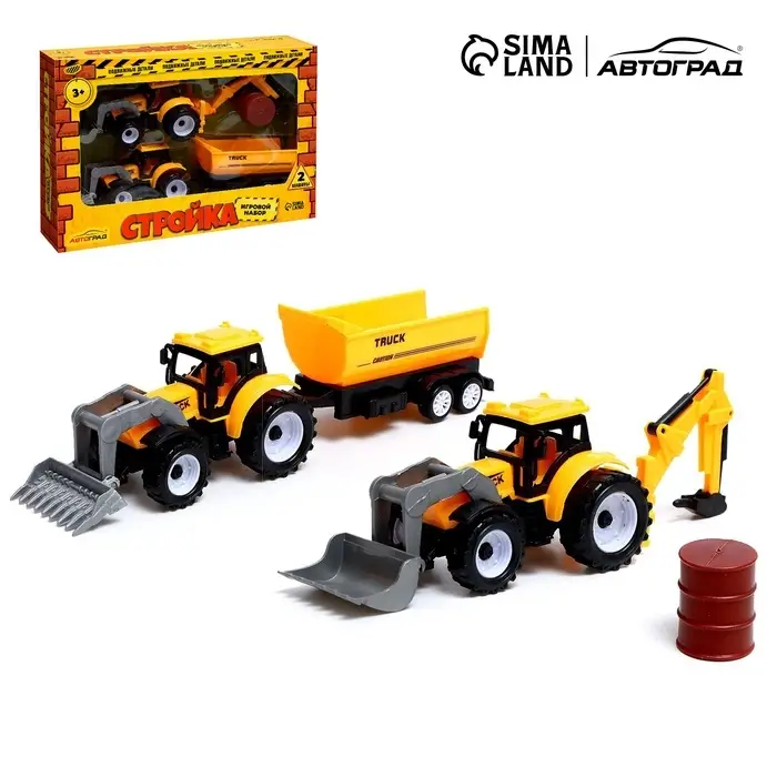 Стройка начинается! Игровой набор с тракторами – это яркий подарок для маленьких любителей техники и строительства. Внутри коробки два жёлтых трактора, которые станут главными героями увлекательных игр.