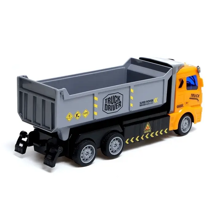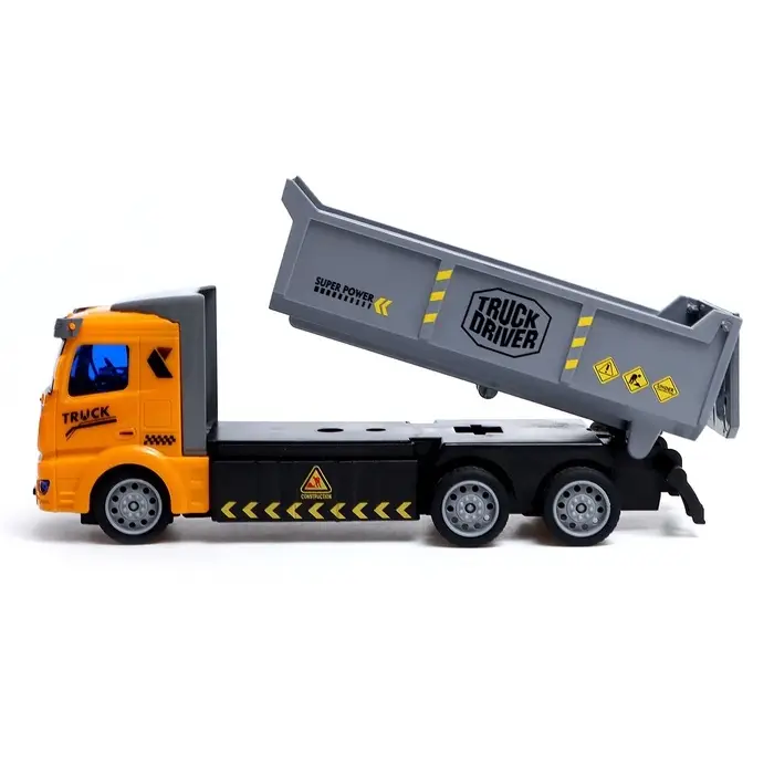 - Функциональный кузов с гидравликой: механизм имитирует работу настоящего самосвала — можно разгружать песок, камни или игрушки.