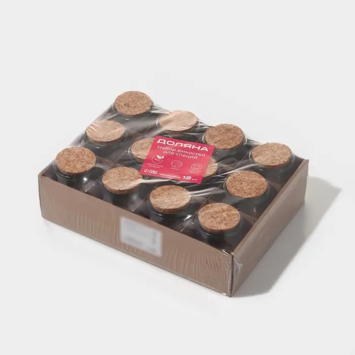 Набор баночек для специй Доляна «Парфе», 200 мл, 7×7×8.5 см, с пробковой крышкой, 12 шт., стекло