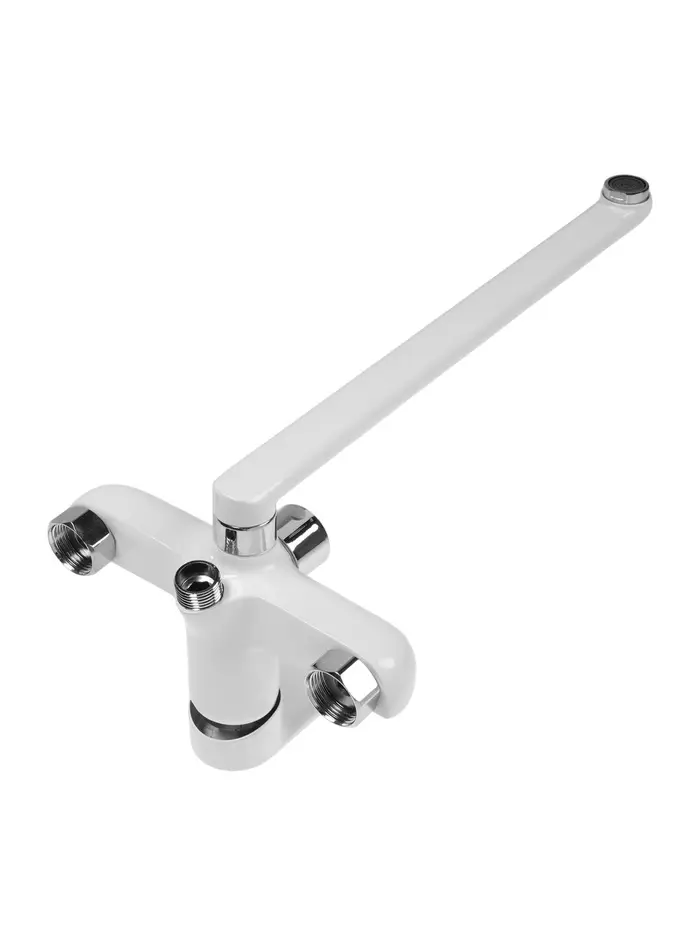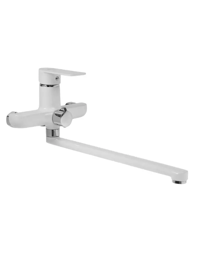 Смеситель выполнен из цинка и имеет элегантное белое и хромированное покрытие, что придаёт ему современный вид и хорошо сочетается с различными интерьерами.