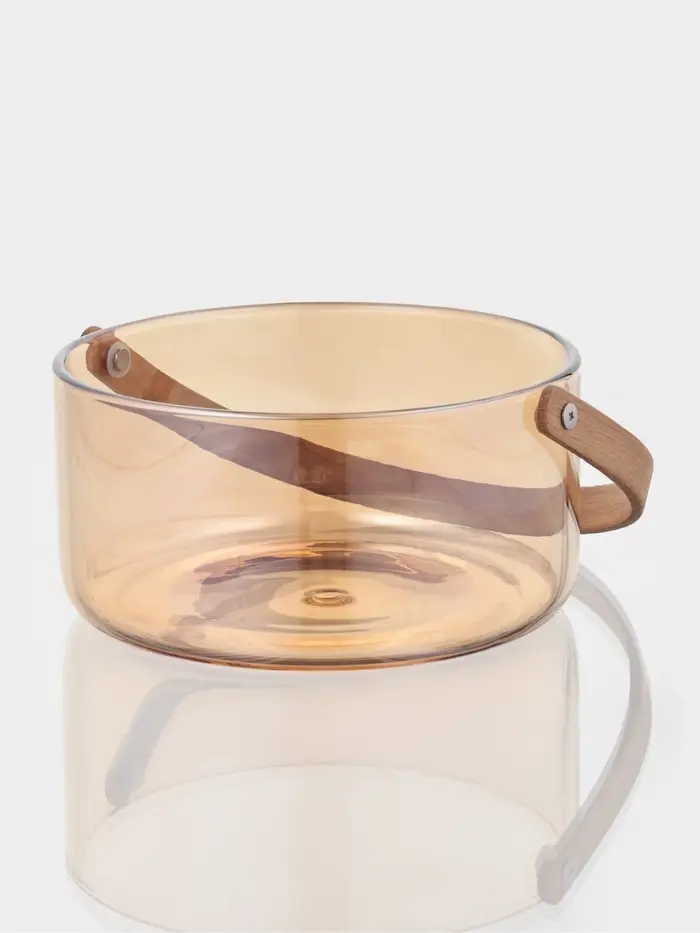 Ведро для льда с ручкой и щипцами Paşabahçe Sylvana, 650 мл, h=13 см, стекло, прозрачное