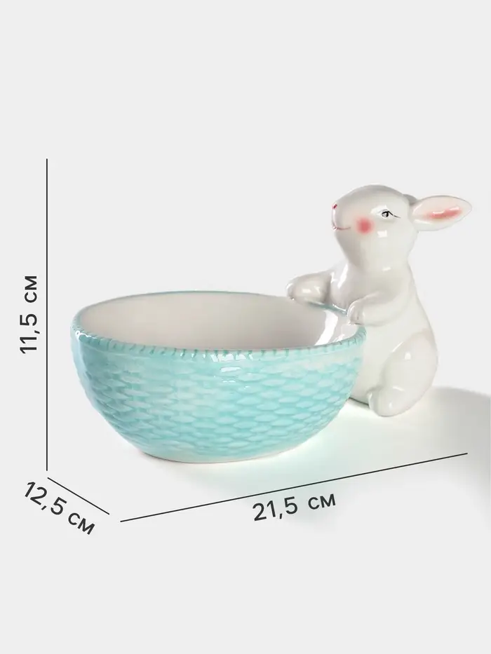 Конфетница Доляна «Зайка», 240 мл, 21.5×12.5×11.5 см, доломит, голубая