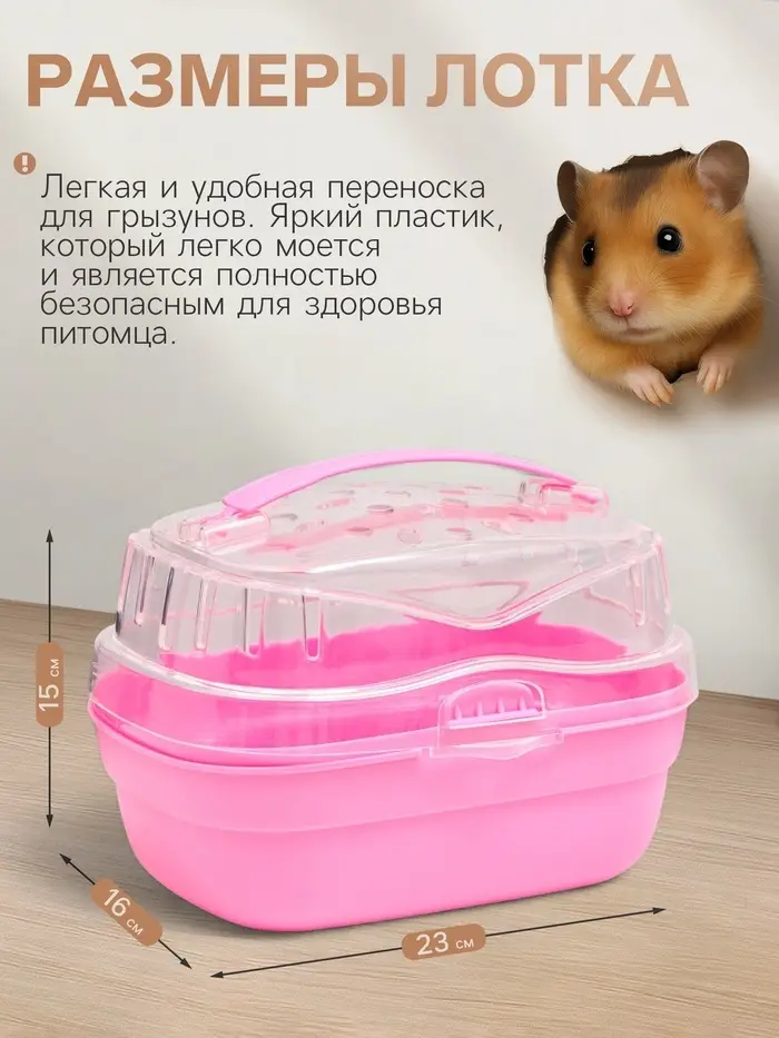 Переноска для грызунов «Пижон», 20×16×15 см, розовая