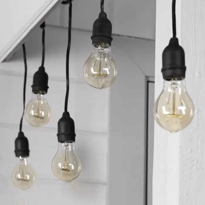 Гирлянда «Ретро белт-лайт» со свесами 10 и 20 см, 10 м, IP54, УМС, 2W, тёмная нить, шаг 50 см, Е27 (без ламп), 220 В
