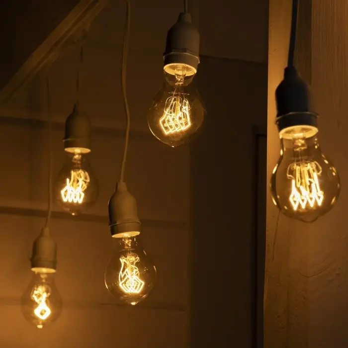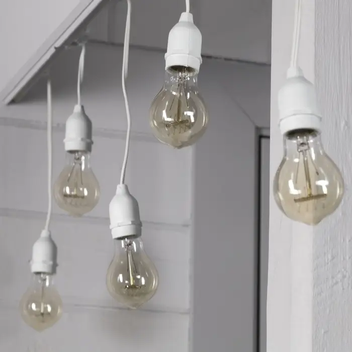 Гирлянда «Ретро белт-лайт» со свесами 10 и 20 см, 10 м, IP54, УМС, 2W, белая нить, шаг 50 см, Е27 (без ламп), 220 В