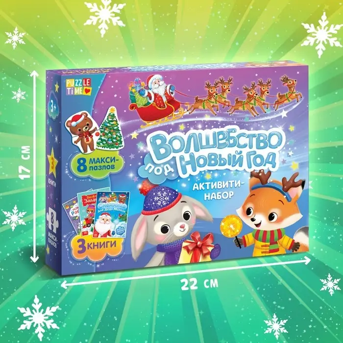 Подарочный набор активити - книжек «Волшебство под Новый Год», 3 книги, 8 макси пазлов