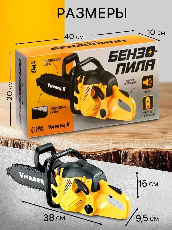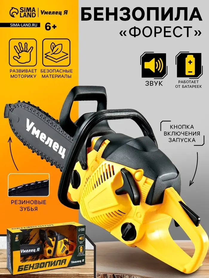 Бензопила — это реалистично выполненная цепная пила со звуковыми эффектами. С ней ребёнок почувствует себя настоящим мастером на все руки!