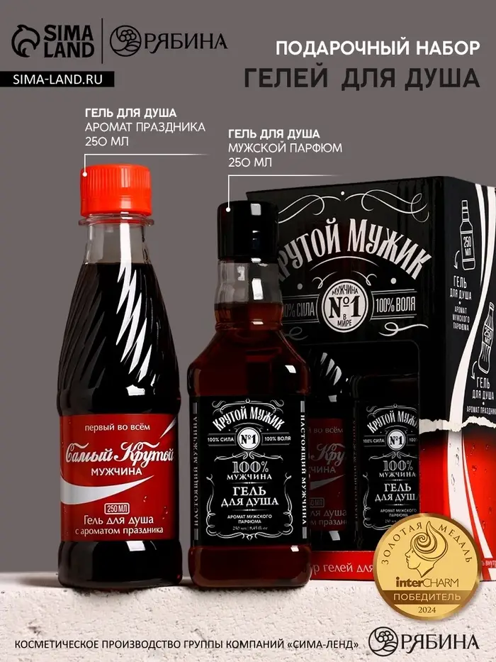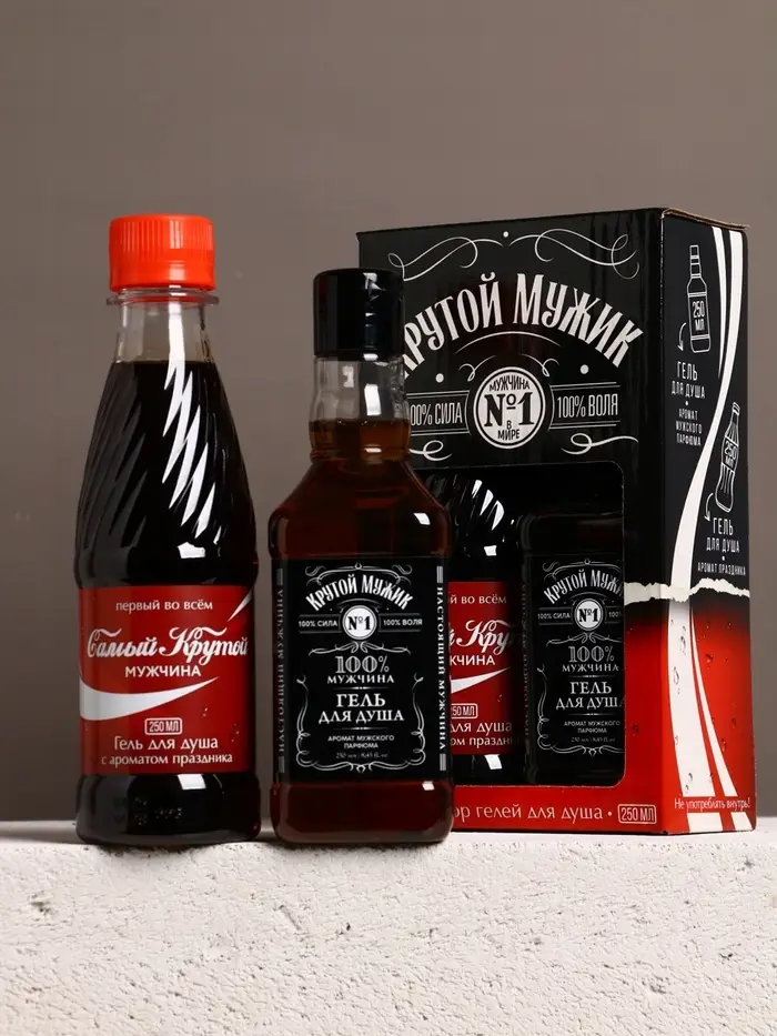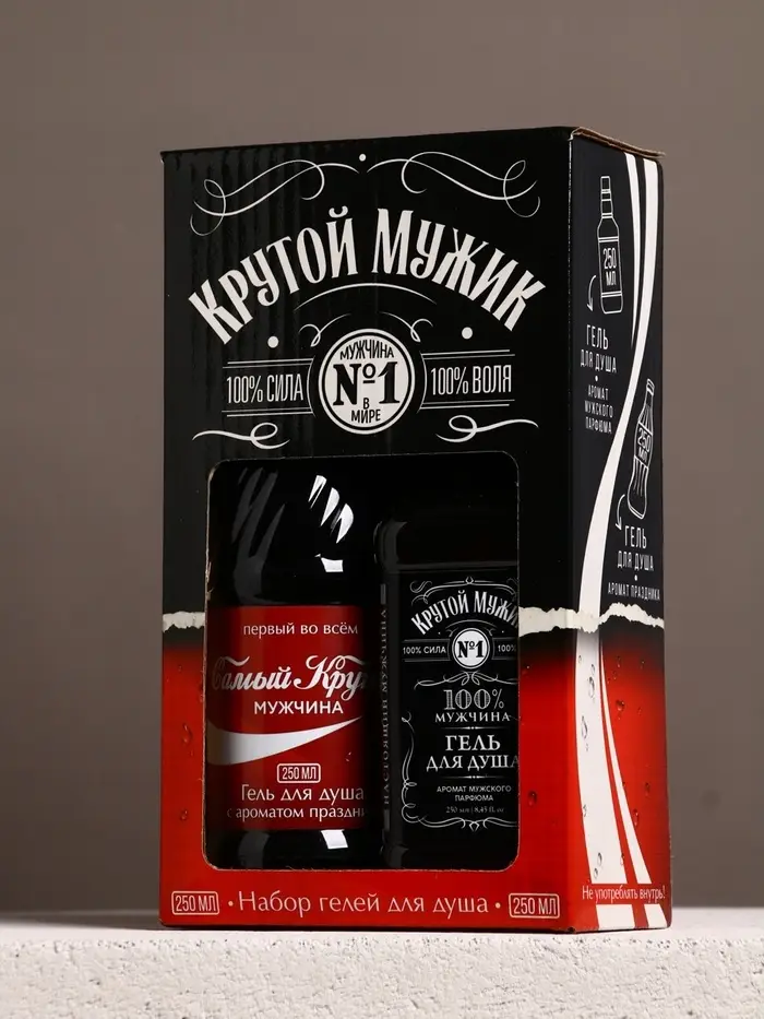 Подарочный набор «Крутой мужик»: гель для душа виски и кола, 2×250 мл, Чистое счастье