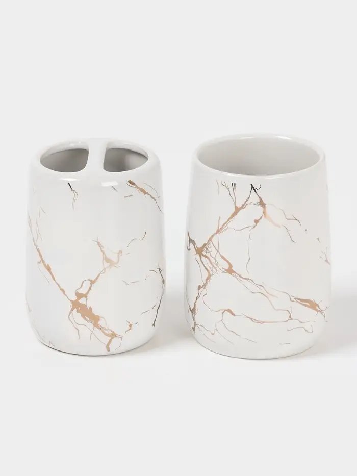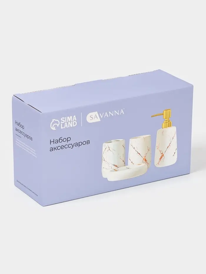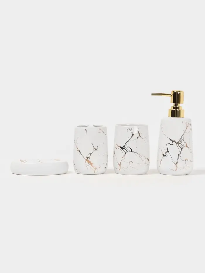 Аксессуары для ванной «Мрамор», 4 предмета, дозатор 190 мл, мыльница, 2 стакана 290 мл, белые