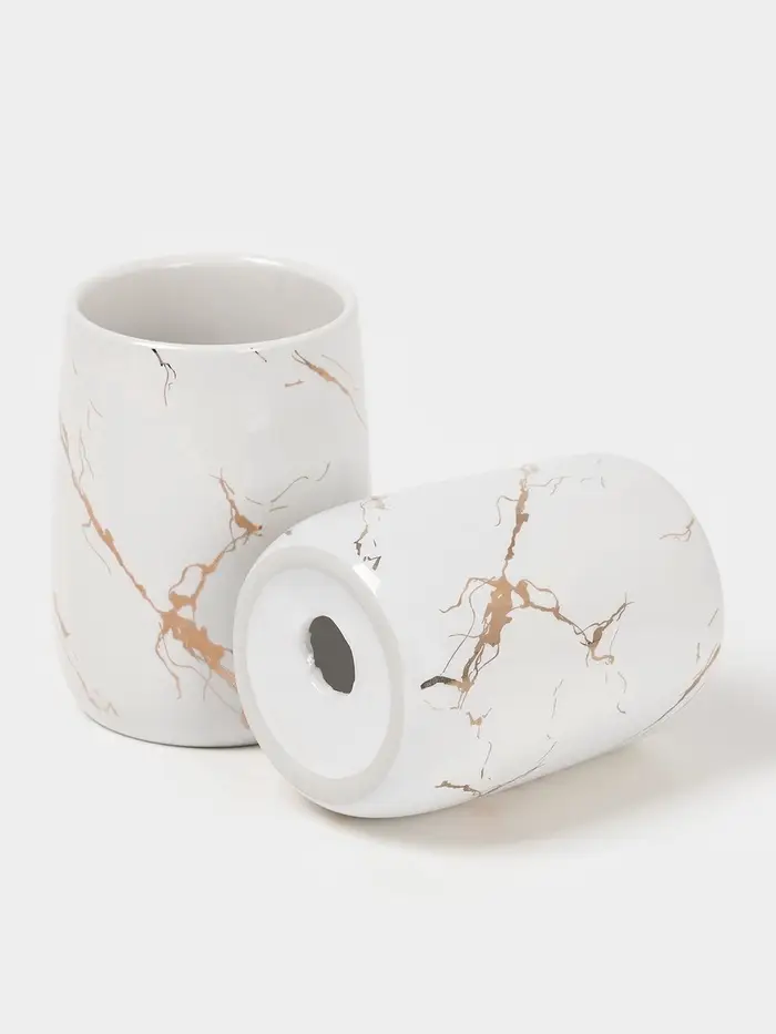 - Изящный дизайн: Белый цвет и мраморный узор добавляют утонченности и легко вписываются в любой интерьер.
